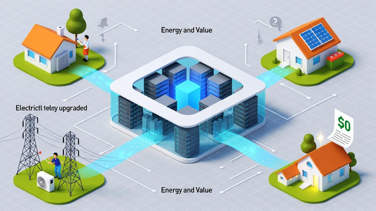 Here’s the insight everyone misses: data centers generate more economic value from energy than they consume. The issue isn’t that they use too much electricity—it’s that the surplus value flows to shareholders instead of communities.