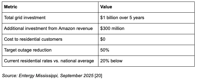 Entergy Mississippi’s “Superpower Mississippi” demonstrates the simplest version of hyperscaler-as-benefactor: large industrial customers generate enough revenue surplus that utilities can fund massive grid investments without raising residential rates.