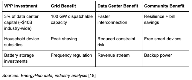 The insight is simple: the fastest way for hyperscalers to get grid capacity isn’t building new power plants (7+ year timeline) or fighting interconnection queues. It’s freeing up existing capacity by making households more efficient.